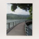Tranquilo de uma ponte de bicicleta que se estende sobre um reservatório. Foto ideal para adicionar uma mensagem inspiradora.