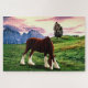 Um garanhão considerável de Clydesdale pasta enquanto o sol se ajusta.