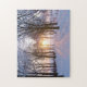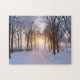 paisagem cénico do inverno com calha do por do sol vinda de algumas árvores