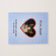 Carregue a sua foto favorita de estimação e personalize o texto para criar este quebra-cabeça exclusivo de quebra-cabeça. O design tem um quadro de coração para a sua foto, com um fundo azul claro de gradiente. O nome no topo é personalizável para o seu nome preferencial ou outro texto, e a mensagem abaixo da foto também é personalizável.