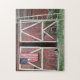 Anteriores Portas Vermelhas com Bandeira Americana e Quebra-cabeça de Foto de 10" x 14".