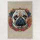 Ce beau portrait est un dessin numérique. Il est entouré de fleurs. Cadeau idéal pour les amateurs de chiens et en parliculier le Carlin et pour toutes les occasions : anniversaires, fêtes, fête des amoureux, fête des parents, cadeau à offrir, à se faire offrir ou s'offrir...