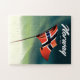 Poster de Esqui da Noruega com uma bandeira da nação escandinava.