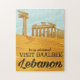 Templo de Baalbek, poster de viagens vintage do Líbano. Este é um poster de férias de cartoon para a nação do médio leste do Líbano.