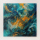 Praça do Oceano Cósmico - Abstrato colorida. Fluindo, não domado, e mudando interminavelmente, esta peça se assemelha às profundidades de um oceano misturando-se à luz cósmica. Como uma tempestade galáctica vulcânica se desenrolando em tempo real, esta trabalho de arte capta um choque de cores laranja e azul brilhantes em correntes cósmicas. A peça irradia o movimento fluido e a energia elementar, borbulhando as linhas entre oceano, céu e espaço numa sinfonia de turquesa e chama onde o olho se perde em visões imaginárias de correntes de giro, lava derretida, formas surreais de rostos e olhos perdidas em um espetáculo complexo.