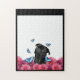 Quebra-cabeça Preto Com Borboletas Azuis E Gerberas