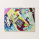 Quebra-cabeça preto da grade de Kandinsky. Pintura a óleo em canvas desde 1922. Wassily Kandinsky é considerado como um dos artistas abstratos os mais inovativos do século XX. A grade preta é uma composição visualmente dinâmica que feauturing roxos, amarelos, e azuis vívidos. As linhas pretas afiadas características de Kandinsky cercam uma grade preta no centro da pintura. Um grande presente para fãs de Wassily Kandinsky, pintura abstrata, e russo art.