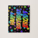 Esta design de quebra-cabeça de campo divertida, animada, com tema de aniversário exibe a mensagem "HAPPY BIRTHDAY, BRODY" com os personagens que têm um espectro colorido de arco-íris inspirado em um padrão de gradação, junto com um campo excitante de estrelas como padrão de fundo. Um quebra-cabeça vibrante como este pode ser uma maneira divertida de enviar desejos de aniversário a alguém chamado Brody. [~Z0000468]