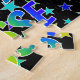 Este animador e animado design de quebra-cabeça de quebra-cabeça com tema de aniversário exibe a mensagem "HAPPY BIRTHDAY, JESSE" com os personagens que têm um espectro colorido de arco-íris inspirado em um padrão de gradação, além de um padrão de fundo de estrelas divertidas. Uma quebra-cabeça colorida como esta pode ser usada para enviar desejos de aniversário a alguém chamado Jesse. [~Z0000468]