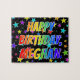 Esta vibrante e divertida design de quebra-cabeça de quebra-cabeça com tema de aniversário apresenta a mensagem "HAPPY BIRTHDAY, MEGHAN" com os personagens que têm um espectro colorido de arco-íris inspirado num padrão de gradiente, além de uma estrela viva molda o plano de fundo. Um quebra-cabeça empolgante como este pode ser uma maneira divertida de enviar uma mensagem de saudação de aniversário a alguém chamado Meghan. [~Z0000468]
