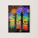 Este design de quebra-cabeça de quebra-cabeça animado e divertido, com o tema de aniversário, mostra a mensagem "HAPPY BIRTHDAY, MICHAELA", tendo um espectro colorido de arco-íris inspirado em um padrão de gradiente inspirado, e um vibrante e explosivo fogos de artifício celebratório inspiraram um padrão de fundo. Um quebra-cabeça colorido como este pode ser uma maneira divertida de reconhecer o aniversário de alguém chamado Michaela. [~Z0000465]