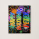 Este design de quebra-cabeça de jigsóvia divertida, vibrante e com tema de aniversário exibe a mensagem "HAPPY BIRTHDAY, PETER", tendo um espectro colorido do arco-íris inspirado em um padrão de gradiente inspirado, e um fogo de artifício celebratório animado inspira um padrão de fundo. Um quebra-cabeça colorido como este pode ser usado para enviar uma mensagem de saudação de aniversário a alguém chamado Peter. [~Z0000465]