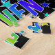 Esta design de quebra-cabeça de jigserra divertida, excitante e com tema de aniversário tem a mensagem "HAPPY BIRTHDAY, STEVEN" com os personagens que têm um espectro colorido de arco-íris inspirado em um padrão de gradação, junto com um padrão de fundo de estrelas vibrante. Uma quebra-cabeça colorida como esta pode ser uma maneira divertida de enviar desejos de aniversário a alguém chamado Steven. [~Z0000468]