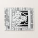 Imagem de desenho animado de um prisioneiro escapando pelos bares de sua prisão. Imagem em preto e branco de bares e tijolos. Adicione algum texto se quiser personalizar este quebra-cabeça. Obrigados para ver as minhas designs!
