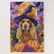Quebra-cabeça Pumpkin de Bruxa de Halloween do Cachorro Espanhol