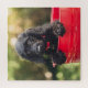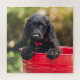 Filhote de porta preta adaptável num balde vermelho brilhante