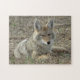 Quebra-cabeça do Coyote Deitado. Um jovem coiote relaxa após uma manhã caçando ratos nas pradarias de grama curta do sul de Alberta.