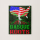 Mapa dos EUA com bandeiras do País Basco e norte-americanos se misturaram com o texto Basco Roots em vermelho e verde.