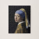 Rapariga com uma pérola Earring de Johannes Vermeer, 1665, é um óleo na pintura de canvas de uma menina em uma visão de três quartos gentilmente virando sua cabeça e olhando calorosamente para o espectador. O lenço da cabeça que envolve e pende da cabeça do sujeito se transforma em tons ensolarados, contrastantes, de amarelos quentes e azuis legal, aqui um azul ultramarino ou de girassol, esquema de cores explorado em muitas das composições do mestre holandês. Sua pérola de brinco brilha suavemente em destaque branco no centro da composição. A expressão enigmática da menina é cronicamente congelada em antecipação a um sorriso, riso, ou fazendo uma pergunta ao espectador. Johannes (Jan) Vermeer (1632 - 1675) foi um mestre pintor holandês de cenas de gênero interior cujas obras foram redescobertas no século 19. Em composições geométricas cuidadosamente construídas desenhadas em perspectiva linear meticulosa, Vermeer explorou os efeitos da luz e da cor sobre figuras humanas, objetos e texturas em salas solares, domésticas, a partir das descobertas óticas e da profundidade de perspectiva 3D de Leonardo e Renascença. Tanto um pintor quanto um revendedor de arte, Vermeer lentamente produziu algumas de suas composições dolorosamente executadas, ricamente pigmentadas por ano, vivendo inteiramente dentro de sua cidade natal de Delft, mascando a fama de seus contemporâneos próximos, Rubens e Rembrandt, que ele alcançou finalmente na era moderna.