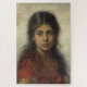 Este design apresenta uma pintura do artista russo Alexei Alexeievich Harlamoff (1840-1925). Mostra uma linda jovem com cabelo castanho escuro e lábios vermelhos cheios. Ela está vestindo um xale vermelho e está encarando com firmeza a distância média. É uma imagem de beleza feminina.
