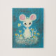 Quebra-cabeça Rato branco com flores & a borboleta amarelas