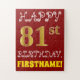 Este quebra-cabeça de aniversário simples e divertido apresenta a mensagem "FELIZ 81ruas ANIVERSÁRIO", com a "81ruas" a ter uma aparência falsa e imitada de cor dourada. Ele também apresenta um nome personalizado e um fundo de cor vermelha. Pode ser uma maneira divertida e especial de dar uma saudação de aniversário personalizada a alguém que comemora seu oitenta aniversário. [~Z0000200]