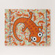Notícias laranja de olhos grandes e divertidas com manchas vermelhas tocando no chão da floresta entre folhas, flores e bolinhas coloridas. Explore as matizes vibrantes do Orange Newt, um símbolo desde 1985, incorporando a diversidade da vida selvagem do Estado. Bicho de lagartos coloridos, com muitas bolinhas e folhas.