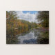 Uma bela cena do outono no lago de Mallard, em Oak Openings Metropark Toledo Ohio, mostra as cores vibrantes das árvores do outono refletindo na água.
