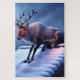 Nem todas as renas estão com Papais noeis! Esta rena assustadora fica no telhado com olhos vermelhos brilhantes. (IA gerado)