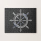 Um design náutico da roda em uma decoração preta do fundo do estilo da fibra do carbono. Um presente náutico moderno atrevido.