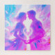 Relaxing Puzzle - Romantic Twin Soul Love Man and Woman with Heart - This beautiful vivid generative content Painting shows a romantic twin soul couple, a young man and woman looking in each other's eyes and touching hands creating a heart out of light. The art is an a soft pastel hue of pink, blue, white.