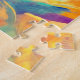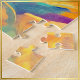 Relaxing Puzzle - Romantic Twin Soul Love Man and Woman with Heart - This beautiful vivid generative content Painting shows a romantic twin soul couple, a young man and woman looking in each other's eyes and touching hands creating a heart out of light. The art is an a soft pastel hue of yellow, green, orange, salmon.