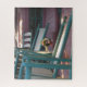 Rosas cor-de-rosa num vaso, e cadeiras de balanço numa varanda de uma cabana em Oak Bluffs no Vineyard de Martha. A Associação de Campinas do Vineyard da Martha (MVCMA), uma atração popular na ilha, abriga centenas de casacos vitorianos de gengibre. Oak Bluffs já foi conhecido como Cottage City. O Vineyard de Martha está localizado em Massachusetts, perto de Cape Cod.