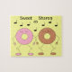 Vamos todos dançam como rosquinhas de morango e chocolate! Eles estão dançando e apenas aproveitando a vida. Engraçado e doce, estas rosquinhas podem trazer um sorriso à face da que recebe esta quebra-cabeça. Personalizável. Trabalho original; c) Sharon Lee Hudson. Todos os direitos reservados.