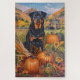 Celebre a beleza do outono com esta pintura vibrante de um cão sentado ao lado de uma bela colheita de Ação de Graças. As ricas cores do outono de abóboras, girassóis e paisagem rural rústica criam uma atmosfera quente e convidativa, perfeita para a decoração sazonal de qualquer amante de cachorro.