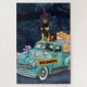 Um cachorro rottweiler giro sentado no caminhão do Halloween com crânios é uma ideia perfeita de presente de Halloween para alguém que ama cachorros.