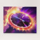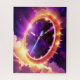 Quebra-cabeça Roxo Cósmico e Relógio Dourado no Universo