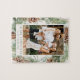 Quebra-cabeça de fotos elegantes, de férias, com uma camada aquosa de pínus, boughs de pínus, e verde esmagado com fundo de creme leve. "Feliz Natal" aparece em letras verdes escuras. Personalize o quebra-cabeça de Natal do pinho com sua foto vertical e seu nome de família.