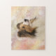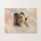 Sable Sheltie, ou Shetland Sheepdog, rosto num prato de um cão pastel abstrato, amantes do quebra-cabeça de serra