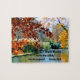 Bíblia Verso de Ação de Graças e elogio: "Oh, dê obrigados ao Senhor; para Ele é bom. Salmo 118:1" Linda Cena de Queda de Folhas de outono coloridas e água.