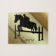 Bonita quebra-cabeça de serra de caçador/pulador com um cavalo e cavaleiro saltando uma grande cerca de oxer e seu nome em um fundo de ouro bonito. Se você gosta deste caçador/design de jumper, veja alguns dos meus outros produtos equestres.
