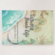 Sonhos de aquarela da vida na praia da água salgada: ondas e areia. Decorado com um cavalo de fantasia floral e seu texto personalizado.