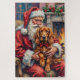 Quebra-cabeça Santa Claus Holding Irish Red Setter Christmas Art