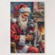 Quebra-cabeça Santa Claus Holding Russian Blue Cat Christmas Art