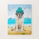 Um cão Bernard Santo sentado na praia é uma ideia perfeita de presente para alguém que ama esta raça de cães.