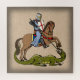 Embora muitas vezes retratado como um cavaleiro medieval, o Santo George era um tribunal militar do início do século IV, no final do terceiro trimestre (cerca de 303 mártires). De acordo com a lenda, George matou heroicamente um dragão que estava aterrorizando o campo ao redor de Silena na Líbia. Este retrato particular do santo guerreiro de Richard H. Fay o retrata armado como um cavaleiro medieval do século 13.