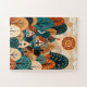 Immerse yourself in the cozy charm of this Scandinavian folk art village. This whimsical illustration features a rolling landscape of patterned hills, quaint cottages, and stylized autumn trees, all warming under a decorative sun. Rich with earthy tones of terracotta, teal, and gold, this intricate design captures the magic of a fairytale harvest season. Perfect for lovers of Nordic design, cottagecore aesthetics, and unique abstract landscapes. A delightful choice for puzzles, wall art, or cozy home textiles.