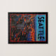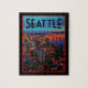 Uma imagem dramática do estilo de vintage dos lindos arranha-céus e edifícios de centro de Seattle com vista à água.