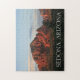 quebra-cabeça de serra de 11" x 14" com uma imagem de várias formações rochosas vermelhas em Sedona, Arizona iluminada por um incrível pôr do sol vermelho e laranja. Veja toda a coleção de Quebra-cabeça de Arizona na seção HOME.