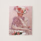 Uma senhora elegante do Victorian em um chapéu e em um vestido florais grandes do laço espera o romance. Pintura Pastel por Sue Halstenberg.